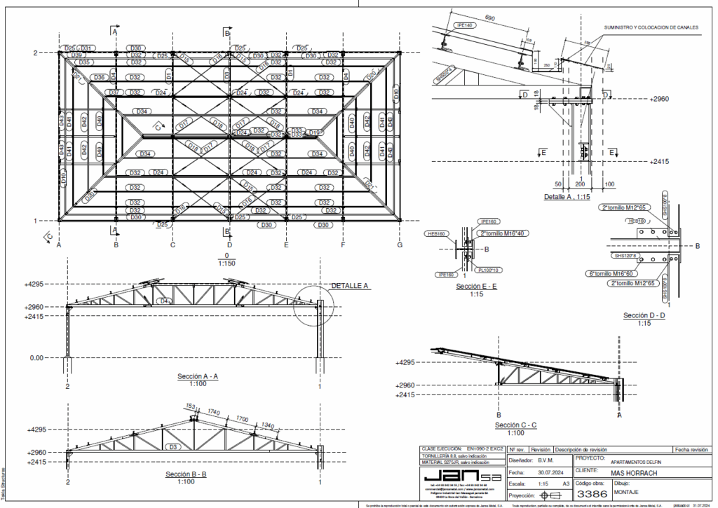 Con el modelo IFC 3D para montaje, entregamos una representación digital exacta de la estructura, tal y como ha sido validada previamente con el cliente.